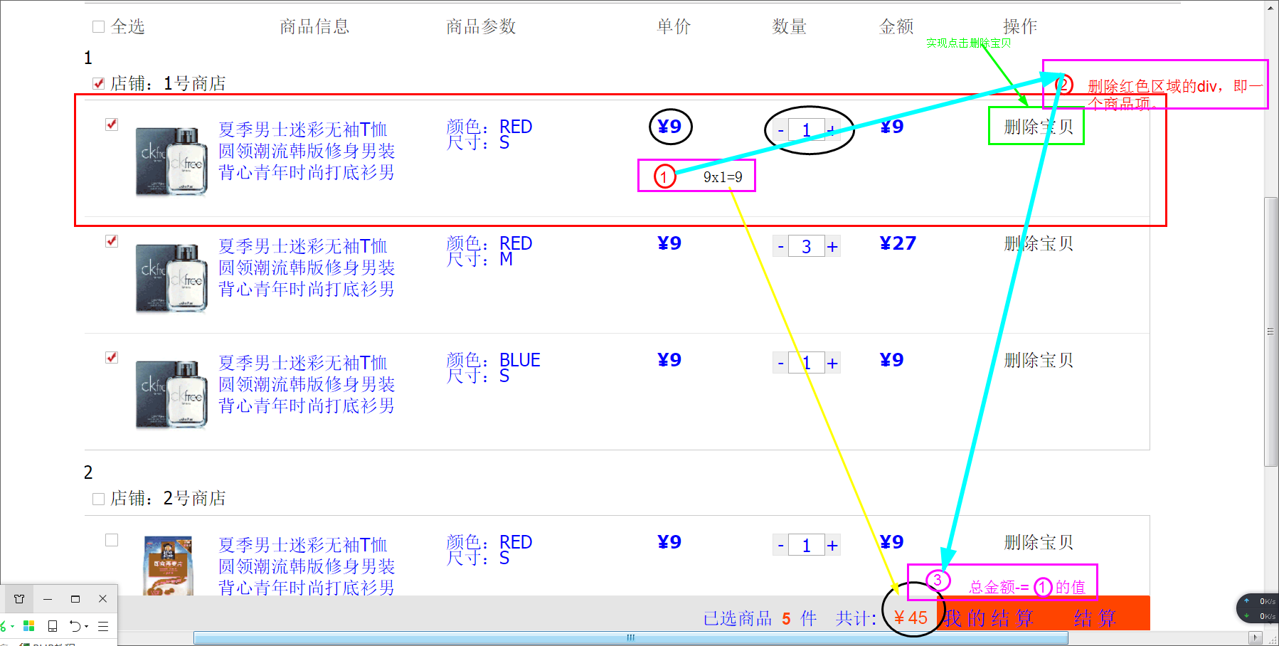 上面的js代碼主要是為了實現(xiàn)右側的刪除寶貝功能。業(yè)務流程是:
