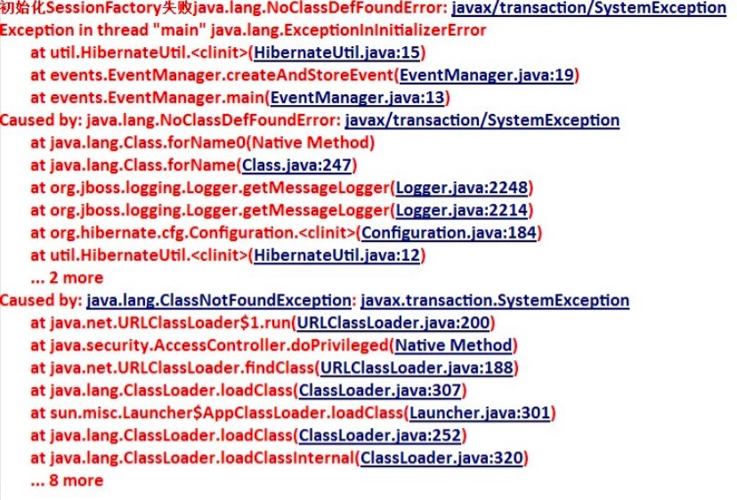 System.err.println("初始化SessionFactory失敗"+ex);