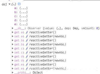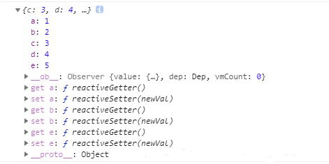 打印出的obj,可以看出,新增的屬性只有通過this.set()的obj.e屬性有g(shù)et和set方法的,而新增的obj.c和obj.d沒有