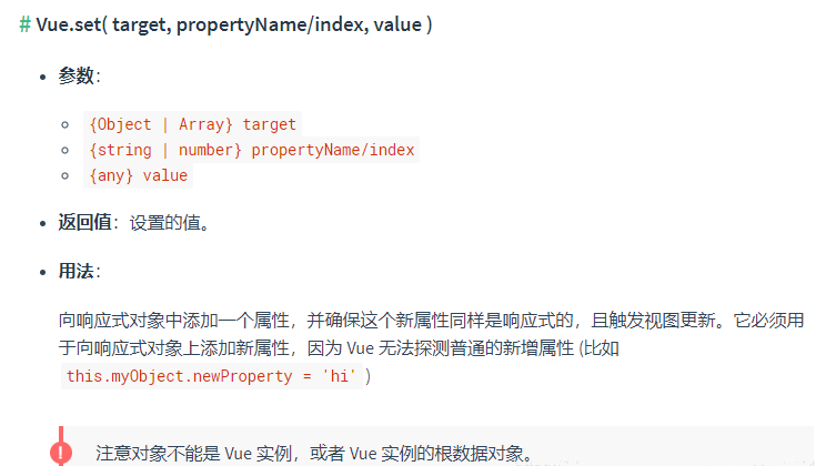 this.$set(this.obj, 'e', 5) // 改百年this.obj.e時 視圖會更新