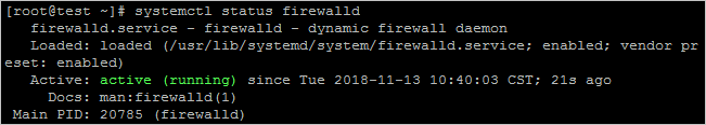 運行systemctl status firewalld命令檢查防火墻的狀態(tài)。