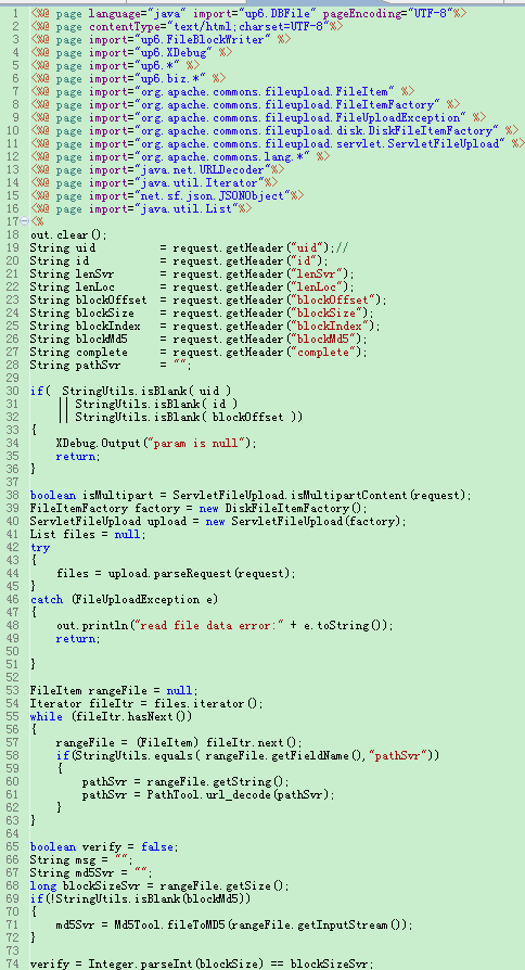 接收文件塊數(shù)據(jù)。在這個邏輯中,我們接收文件塊數(shù)據(jù)。控制優(yōu)化數(shù)據(jù),方便調試。如果使用監(jiān)控工具,可以看到控件提交的數(shù)據(jù)。