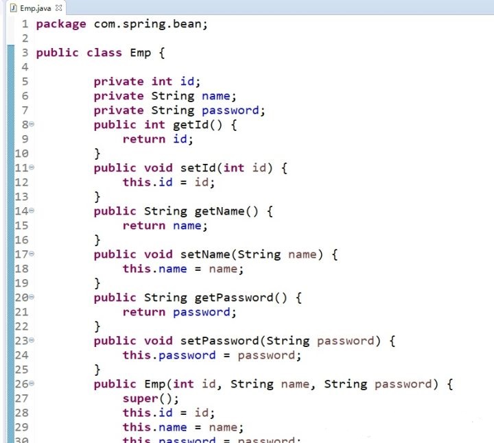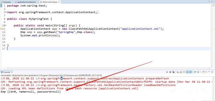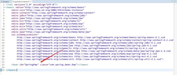 第四步,在容器中配置這個Bean(Emp) 主要是在bean這個元素中描述id和class