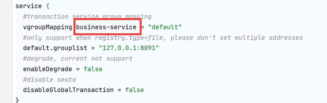 你也可以配置`spring.cloud.alibaba.seata.tx-service-group`修改后綴,但是必須和`file.conf`中的配置一致