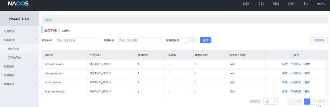 例子來(lái)自Seata官網(wǎng)下載,修改了inter服務(wù)調(diào)用,集成了Naco和鏈接追蹤zipkin。