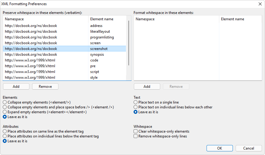 您可以指定 XMLBlueprint 如何格式化您的 xml 文件。例如,如何處理空元素以及放置屬性和文本的位置。XMLBlueprint 正確處理空格(xml:space 屬性),您可以為特定元素覆蓋此行為。