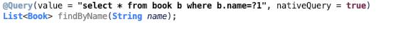 沒有具體sql語句,看起來沒有實現(xiàn)一樣,但其實是遵循規(guī)則的實現(xiàn),你只要寫 findByXxx(Xxx xx) 就能根據(jù)某個鍵自動實現(xiàn)數(shù)據(jù)庫查詢,當然其他的語句也是可以實現(xiàn)的。