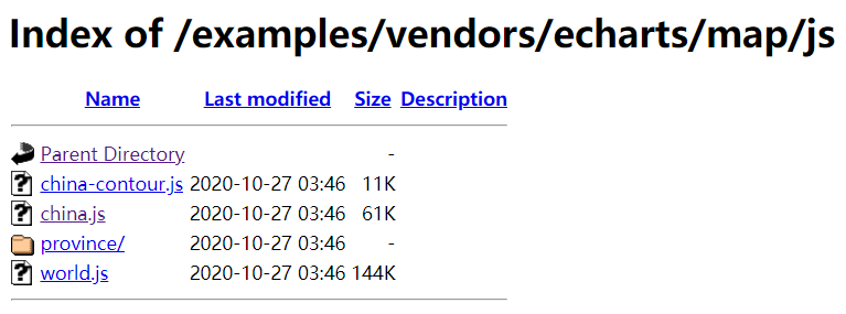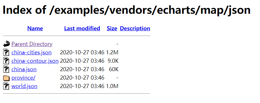 Echarts官方文檔已經(jīng)暫停了地圖數(shù)據(jù)的下載,但是百度Echarts給我們留了下載的官方接口:https://echarts.apache.org/examples/vendors/echarts/map/
