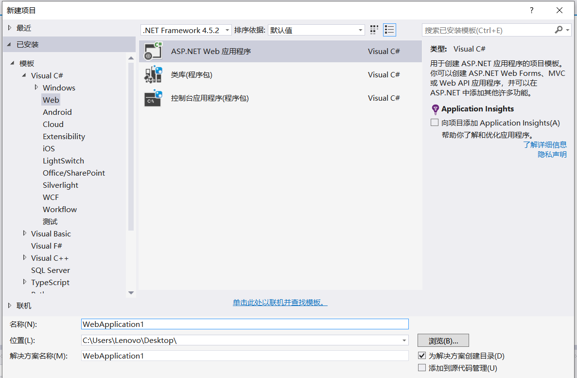 *選擇模板里的Web里的第一個(gè)然后點(diǎn)擊確定(位置和名稱可自行更改)