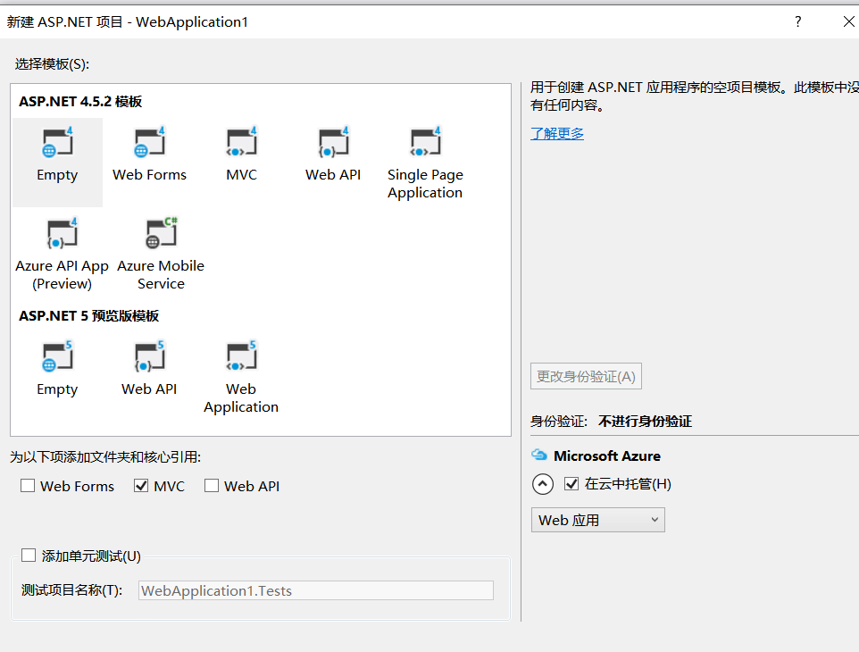*圖二確認(rèn)后跳出圖三,點(diǎn)擊第一個(gè)Empty,核心引用勾選MVC后確認(rèn)