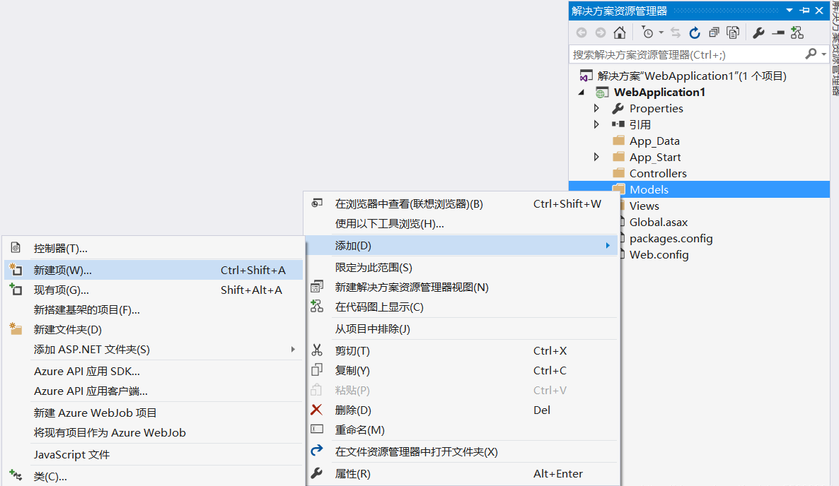*右鍵點(diǎn)擊Models(可自行改動(dòng))點(diǎn)擊添加點(diǎn)擊新建項(xiàng)