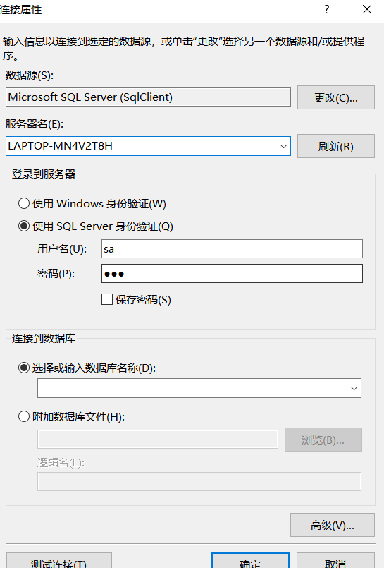 *可行選擇身份驗(yàn)證(建議使用SQL身份驗(yàn)證)