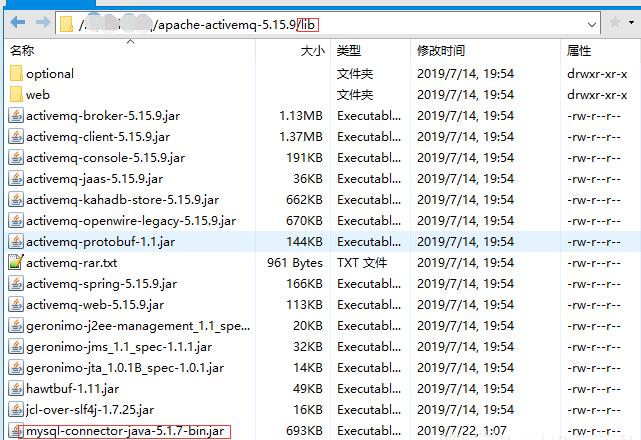 (1)將Mysql的驅(qū)動jar包加入到ActiveMQ的lib目錄下