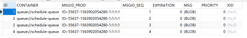 這樣配置好后,一旦有消息產(chǎn)生就會在相應的表中看到記錄:但隊列中的消息一旦被消費就又會被刪除