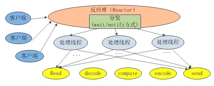 注意:每個線程的處理流程大概是讀取數(shù)據(jù)、解碼、計算、編碼、發(fā)送響應(yīng)。