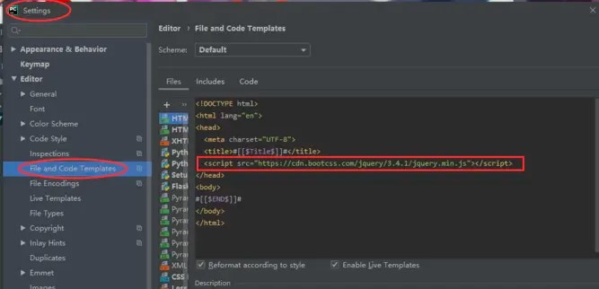 注意:bootstrap框架動態(tài)效果是基于jQuery的 也就意味著你在使用bootstrap的時(shí)候要提前先導(dǎo)入jquery,可以提前在seetings中設(shè)置好默認(rèn)