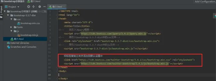 這是第一種將文件下載到本地中的方式,第二種可以直接從bootcdn中獲取鏈接