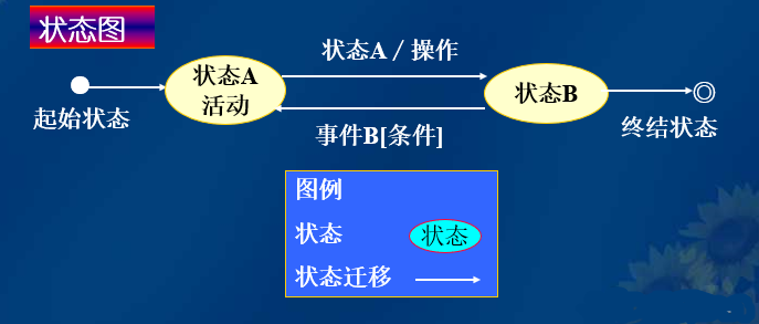 狀態(tài)圖是一個狀態(tài)和事件的網(wǎng)絡,側重于描述每一類對象的動態(tài)行為,狀態(tài)的遷移。
