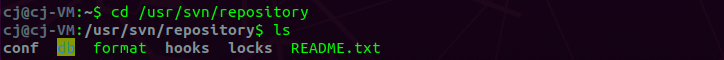 完成checkout后,當(dāng)前位置將自動(dòng)生成名為 repository 的文件夾,里面是從svn服務(wù)器中下載的文件