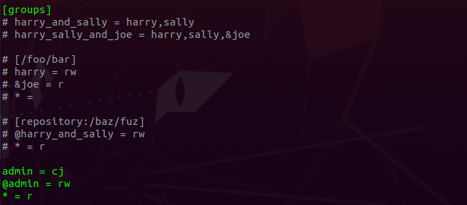 @admin = rw //admin權(quán)限組有讀和寫(xiě)的權(quán)限