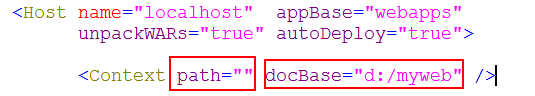 如果你的站點(diǎn)存放在webapps目錄下,可以使用相對路徑,比如,我們將d:/myweb整個(gè)拷到%TOMCAT_HOME%/webapps下,上圖的docBase很明顯就不需要加上d:/了。