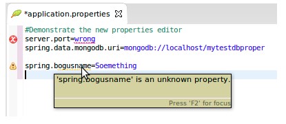 假設(shè)您要定義運行 Spring Boot 應(yīng)用程序的端口。只需打開“application.properties”或“application.yml”文件(取決于您是否喜歡配置文件的屬性或 YAML 格式)然后開始。Spring Tools for Eclipse IDE 提供增強的編輯器體驗,為所有可用的 Spring Boot 屬性提供代碼完成。