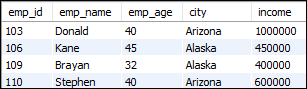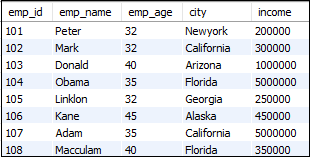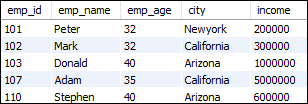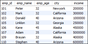 讓我們首先創(chuàng)建一個名為“ employee ”的表,其中包含以下數(shù)據(jù):