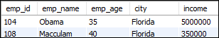 此語句從表中返回城市名稱以任何字符開頭后跟“lorida”字符的所有員工:
