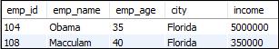 這是另一個產(chǎn)生輸出的示例,其中所有在收入列中的第二個位置為“5 ”的員工: