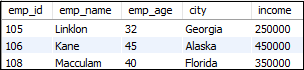 同樣,此語句從表中返回城市名稱以“a”開頭并以“a”字符結(jié)尾的所有員工: