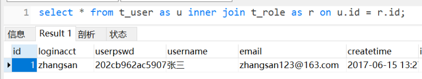 這里我們就來查詢id都為1的數(shù)據(jù):