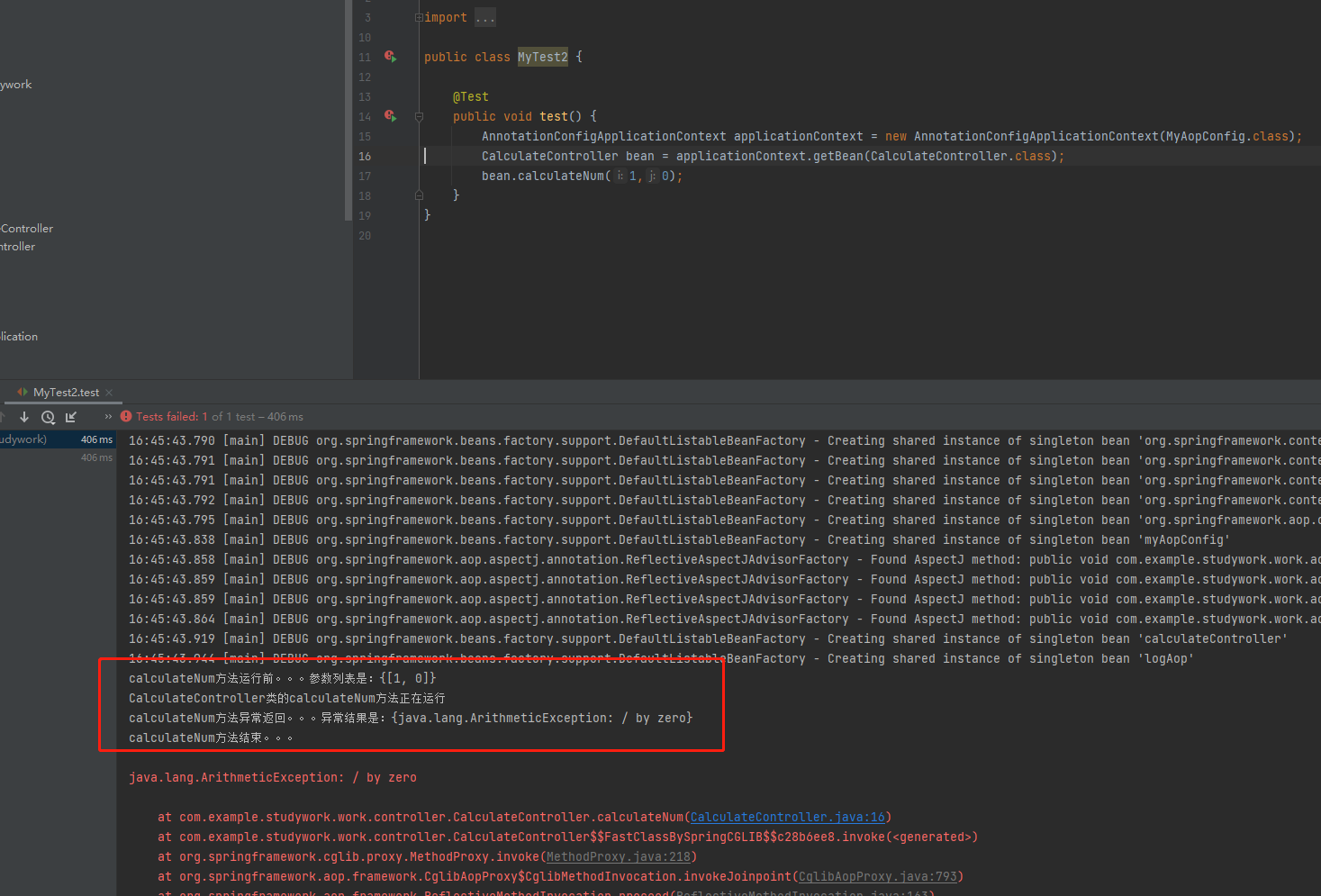 2.定義一個(gè)業(yè)務(wù)邏輯類(CalculateController);在業(yè)務(wù)邏輯運(yùn)行的時(shí)候?qū)⑷罩具M(jìn)行打印(方法之前、方法運(yùn)行結(jié)束、方法出現(xiàn)異常,xxx)