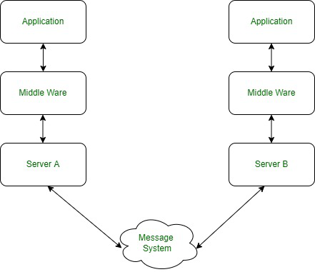 上圖是一個面向消息的基于中間件的分布式系統(tǒng)部署,它提供了一種基于服務(wù)的進(jìn)程間通信方法。MOM 的消息傳遞與郵政服務(wù)相同。