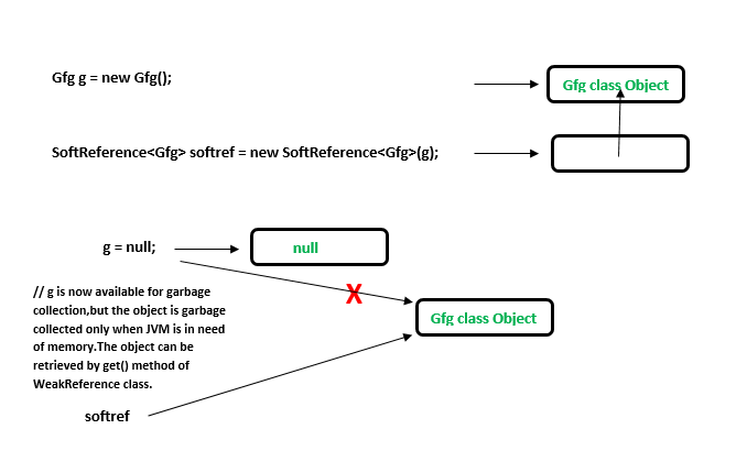 SoftReference<Gfg> softref = new SoftReference<Gfg>(g);