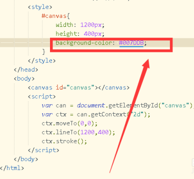 在style標(biāo)簽中,利用ID選擇器設(shè)置canvas樣式,添加背景色設(shè)置