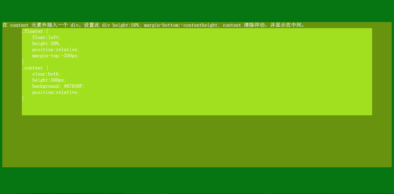 這種方法,在 content 元素外插入一個(gè) div。設(shè)置此 div height:50%; margin-bottom:-contentheight;。