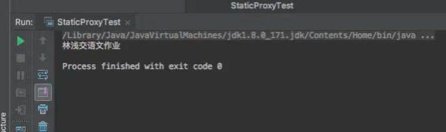 我們執(zhí)行代理測試類,首先我們創(chuàng)建了一個需要被代理的學(xué)生林淺,將林淺傳入stuHandler中,我們在創(chuàng)建代理對象stuProxy時,將stuHandler作為參數(shù),那么所有執(zhí)行代理對象的方法都會被替換成執(zhí)行invoke方法,也就是說,最后執(zhí)行的是StuInvocationHandler中的invoke方法。所以在看到下面的運行結(jié)果也就理所當(dāng)然了。