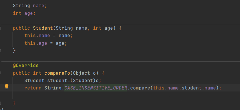 在Student類中實現Comparable接口,重寫compareTo方法即可