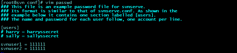 # vim svnserve.conf