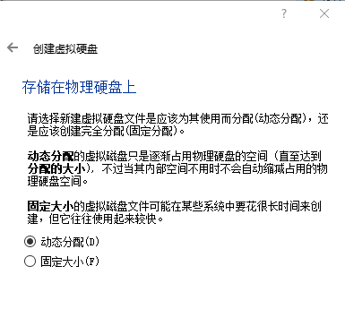 8.存儲在物理硬盤上,這里選擇“動態(tài)分配”。點擊“下一步”。