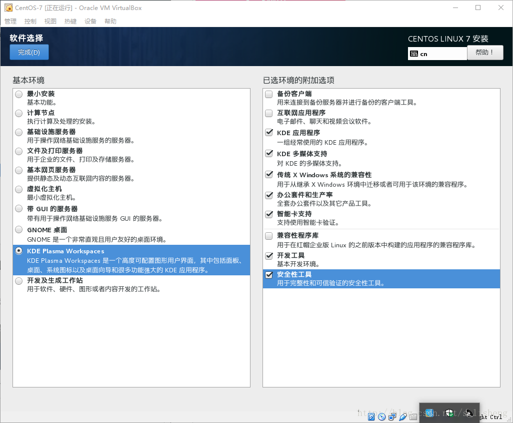 4.點擊軟件選擇,根據(jù)自己需要選擇安裝,如果不熟悉,就不要選擇,默認最小安裝,不過要安裝圖形界面的話,還是選擇一下GNOME或者KDE。