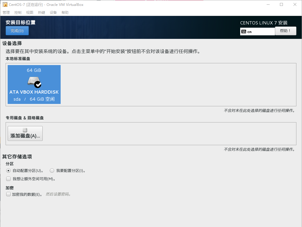 5.在安裝位置哪里選擇創(chuàng)建好的虛擬磁盤,分區(qū)哪里自動分配分區(qū)大小。