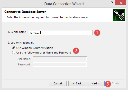 1.輸入服務(wù)器名稱/IP 地址。對于本教程,連接到 localhost 127.0.0.1