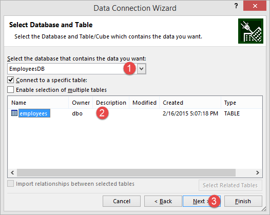 從下拉列表中選擇EmployeesDB