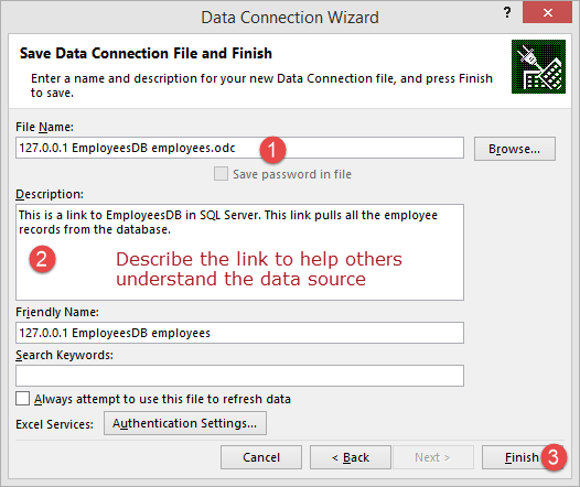 它將打開一個數(shù)據(jù)連接向?qū)б员4鏀?shù)據(jù)連接并完成連接到員工數(shù)據(jù)的過程。