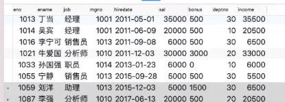 (2)--在表中加入新字段,員工收入列income(income=sal+bonus):