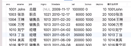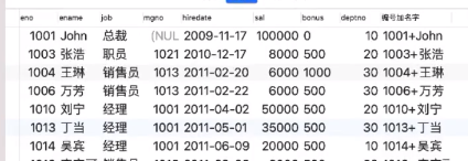 SELECT *,concat(eno,’+’,ename) as ‘編號(hào)加名字’