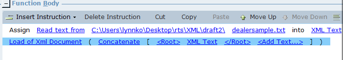 將 Dealersample.txt 中的讀取文本分配到XML 文本中