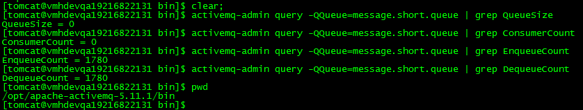 activemq-admin query -QQueue=message.short.queue | grep EnqueueCount