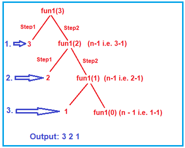 正如您在上面的跟蹤樹中看到的,它首先打印值 3,然后打印 2,然后打印值 1。這意味著 printf 語句執(zhí)行了 3 次。因此,當(dāng) n 值為 3 時,此遞歸函數(shù)將需要 3 個單位的時間來執(zhí)行。如果我們將 n 值設(shè)為 5,那么執(zhí)行此遞歸函數(shù)將需要 5 個單位的時間。